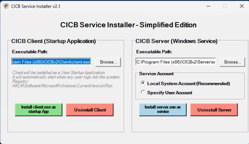 If you need to modify the settings, you need to stop the CICBv2 service via services.msc, then run the CICB-Server with administrative privileges, then modify the necessary settings through the UI. After saving the settings, exit the CICB-Server and then restart the CICBv2 service.